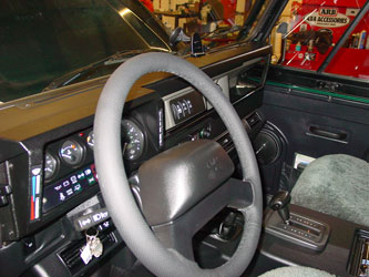 In the off road damage the steering wheel was even bent, so the customer sourced a new Defender Td5 style leather wrapped unit that we have installed into the 90. The steering wheel looks great, actually better than the picture as the flash was playing up the color. To the naked eye the color looks correct and the wheel feels great.
