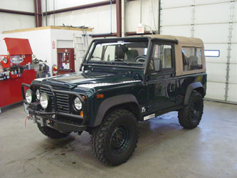 Here you can see the 90 completed and ready to head back to Maryland. In this trucks case we will meet the customer at the airport and he will head home in the 90 for a summer of fun in his, now returned to normal, 1997 NAS Defender 90 soft top with the ECR 5.2 power-plant. We hope to see this 90 back again for upgrades and service, but next time we hope not to have to repair damage that never needed to happen in the first place, but if it does we are here to take care of any needs any Defender owner has, from a large project to damage repair like this.