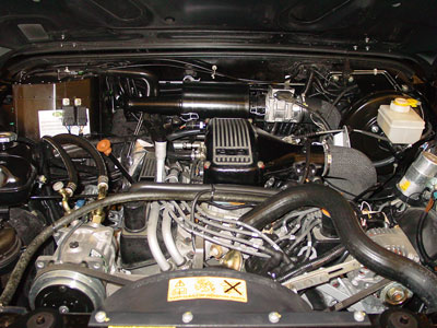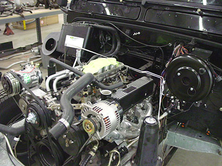 Here you can see the completed engine bay with the Pursuit 4.6 set up mated to the ZF automatic. This set up helps the 110 move the way it should and gets rid of the underpowered 3.9 completely.
