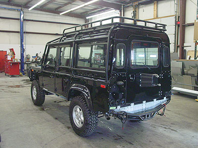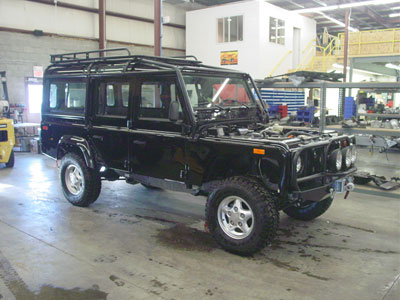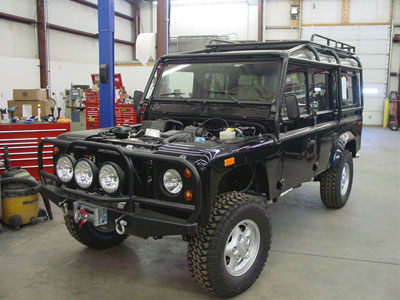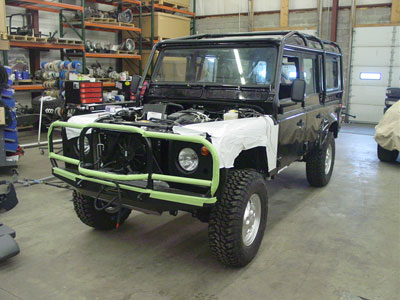 Here you can see the 110 up and running under the power of its new Pursuit 4.6 and automatic gearbox and it is looking fantastic. Next up we will install the ECR ROX sliders that have just come out of the paint booth and start installing the audio/video system.