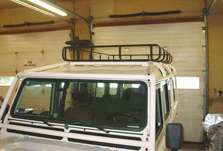 Here you can see the ECR roof rack basket we have fabricated for the 110. It is much more flexible as it will accept any Yakima rack product and has built in locations for work lights, Hi-Lift jacks and more. It can also accommodate a roof top tent, offers a lower profile for garage parking and it just plain looks better than the stock roof basket.