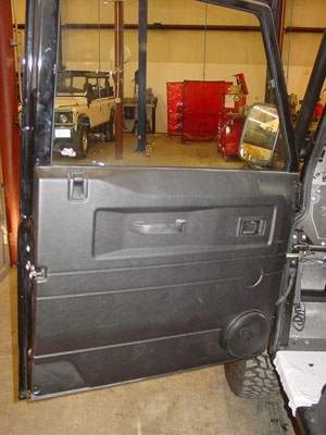 Speaking of doors, here you can see the front door has had its interior parts assembled and a new JL Audio speaker has been added to each front door for great sound. The new black door panel has been installed and all the power window systems have been installed and tested. All five doors to the Station Wagon have now been completed.