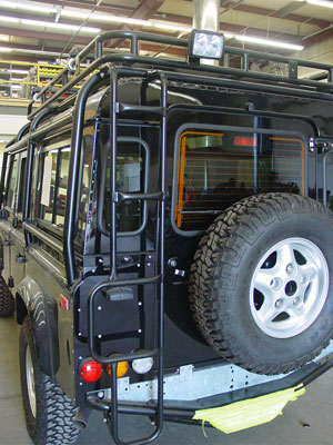 The rear lighting changes are buttoned up as well. The LED lamps are installed and the Hella twin bulb work/reverse lamp has been installed along with the factory rear ladder that has been zinc and black powder coated.