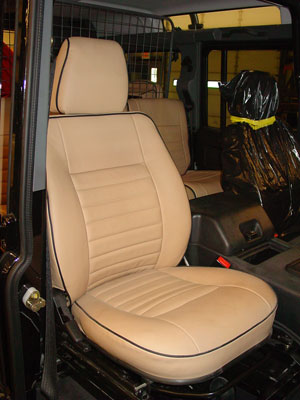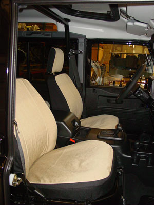Here you can see the custom seat covers in tan. These help keep the seats protected and still give a nice custom feel to the interior because they are not the standard color.