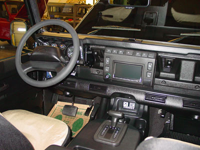 Here you can see the finished dash section with the touch screen navigation system and leather wrapped steering wheel. Our goal is to make our custom trucks look like the factory could have built them, and this 110 is another example of a Defender 110 that the factory never built, but we have made it all look correct with even better than factory fit and finish.