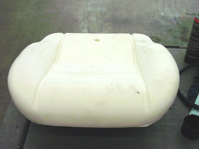 This image shows the new seat base installed on the pan awaiting a new trim. The shape is correct and it will make the 90 a much nicer place to be and will completely fix the seating position issues of the old dead foam.