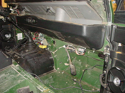 Back inside the new Air Conditioning has been set up and installed and the missing interior trims have been installed. These not only make the 90 look better, but they will help reduce heat and noise that easily transmits through the floors on a bare Defender 90.