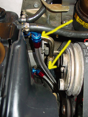 upgrading the old original oil cooler lines to our new ROX stainless steel units that will do a much better job of keeping the engine oil cooler (you'll see in the image the oil lines no longer run by the hot exhaust manifold) and these ROX units do not have the tendency to burst causing the dreaded engine fire that has claimed many a NAS 110. For more oil line information go here.