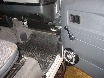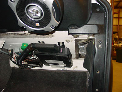This images shows the interior starting to come together, The speakers have been moved to the doors and the kick panel has been put into place along with new floor mats and trims.