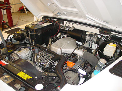 Here you can see that after a good bit of work we have the engine bay back together and looking good, and more importantly working correctly. All the strange NAPA style parts have been removed and everything has been put back to the way it should be with correct Land Rover Genuine Parts. We then tuned and tweaked everything in order to make all the systems run strong and work together. We also did further upgrades like updating the coolant temp. gauge and...