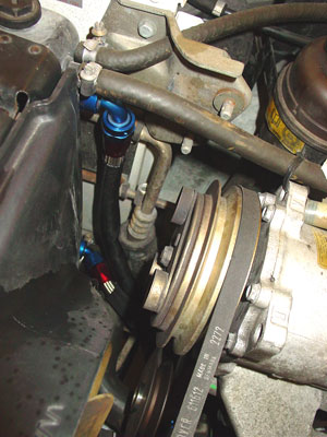 One that the factory didn't get right and that needs upgrading are the oil cooler lines. The originals are a bad design and can cause a complete Defender melt down. Go here for details. To cure this we have installed a set of ROX oil cooler lines. These are made from race car parts and are the cure for the old and dry rotted original oil lines.