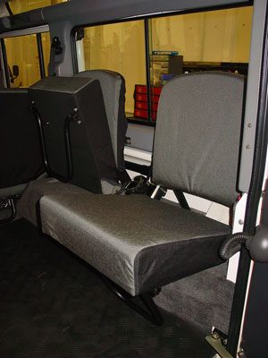 The rear individual jump seats get the seat covers as well and the entire truck has been outfitted with heavy duty rubber floor mats, and the floor carpets, that just tend to hold water, have been boxed up for potential future use.