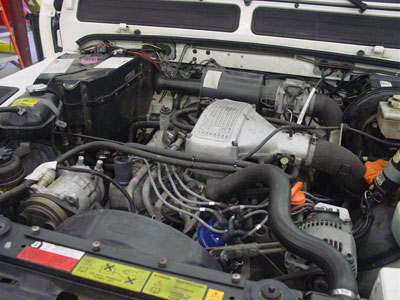 Here you can see the engine bay nearly complete. The nice thing about working on a truck as unmolested as this one is that repairs are straight forward. We just have to replace what needs replacing and we don't have to undo any goofy crap that some back-lot engineer though would be the greatest thing since sliced bread. Repairs on a stock rig like this are simple and long lasting because the truck is the way the factory intended.