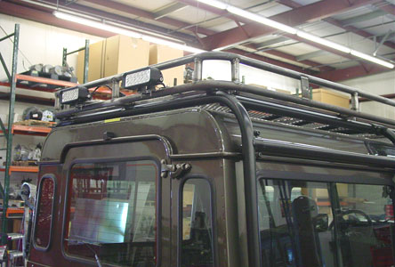 The changes in store for the truck range from small things like adding some auxiliary lights, to big things such as converting the 110 from 5 speed manual to an automatic gearbox. The new owner also wants to have the roof the same color as the rest of the body, so you can see above that we have removed the safari cage and the roof, and taken the roof to our in house paint department.