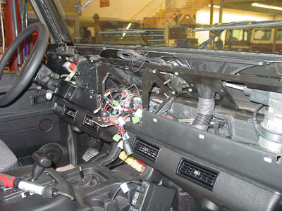 Inside we have started to fabricate the required mounts for the customer's desired GPS system. We have also started the wiring changes that will move the radio to the new automatic center console, as well as the wiring and cable running for all the additional equipment the customer wishes installed.