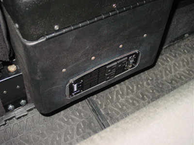 Even though we switched this 110 from a 5 speed to an automatic we have tried to keep all the equipment that was already in the truck, and that includes the inverter. We have changed the mounts and modified the center console so that the 115v power that the truck can supply is still easy to use.