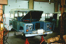 Here the rusted old chassis is been removed and the body set up on a newgalv. coil chassis for its refurbishment. Other work will include a newTurner 2.25, Mansfield heater, wiring harness, etc. In a few weeks it willbe road ready again, and ready for years of updated service.