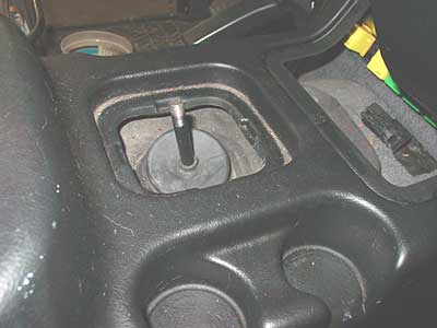 Remove the 2 small panel plugs from the front of the shifter console. There is one on the LH side and one on the RH side.