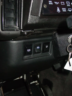 Great looking custom lights aren't worth doing if you have to carve up the interior of your Defender with goofy and cheap looking switches to control them. When we do additional upgrades to a Defender we want it all to look like it belongs, not like hillbilly 4x4 just installed something from Wal-Mart. The image above shows the switch gear for the LED roof mounted lights in the 110. The switch (in the middle) fits the factory location and has the correct logo on it and illuminates so that it is easy to find in the dark.