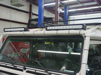 This image shows the new LED lamps for the front of the 110. These units are basically like instant daylight. They are sealed and because they are LED units they draw very little power and will last much longer than any bulb lamp. The low profile also gives them a great look on the top of the 110 and their all alloy construction will keep them good for the long haul.