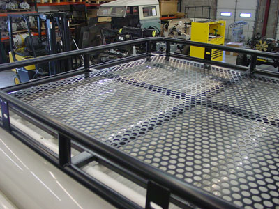 Here you can see that our ROX 110 roof basket has come back from powder coating and has been installed on the Rover. The lower profile, more modern design rack looks much better than the original unit and it is much more functional as well.