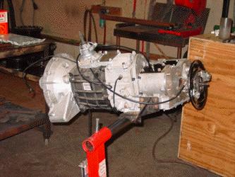 Here you can see the completed 5 speed gearbox and transfer case, ready