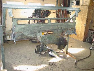 Once the really rusty parts are cut away, we then media blast the firewall.