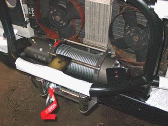 This images shows the new Warn 9000 winch installed in the new bumper. Due