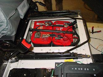 The JL Audio 500/5 amplifier is hidden under the rear bunch seat. As you