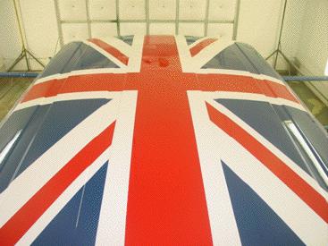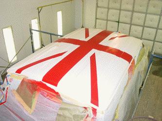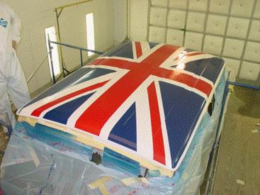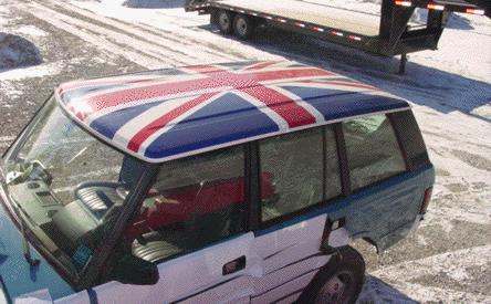 been applied to the Range Rover roof in the Union Jack pattern. The next