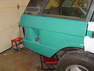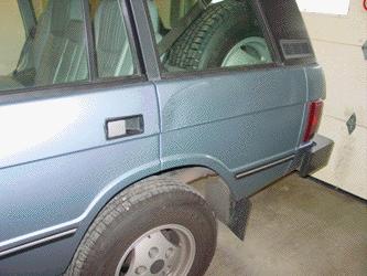 Above you can see the new RH rear quarter panel installed on the Range Rover.