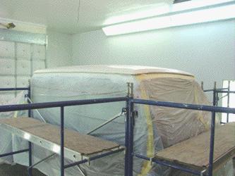 Here you can see we have moved the Range Rover into our spray/bake booth