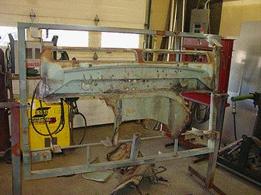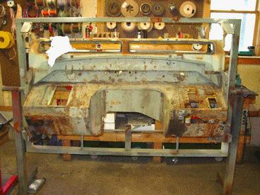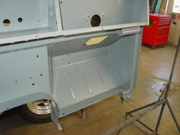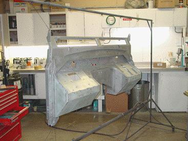 Here you can see the bulkhead being "dunked". It is a simple, although messy, process that makes the bulkhead last as long as possible. The known problem areas in a bulkhead are the floors and door posted. The new floors we have installed have a zinc coating to prevent future rust. We use the dunk tanks to combat rust in the door posts.