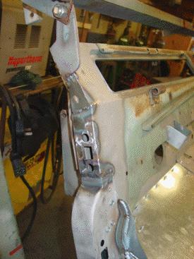 In this image you can see the RH upper hinge section. The spots that we know to be problem areas on a bulkhead are all blasted back to white metal, as seen above. That way we know that no pin holes, hidden rust or body filler is present in the bulkhead. Once all the rust is removed we remake any small panels by hand to get the bulkhead back into shape. In this bulkhead the areas around the upper hinge, and especially the door seal lip were badly rusted, so small repairs have been done by tig welding in new steel pieces. Once these welds are ground flush you will never see them. All ECR bulkheads are done with 100% steel. We do not use any body fillers in our bulkheads, not even a skim coat. The metal work is all done by our skilled fabricators, so body filler is not required. The factory made 100% steel bulkheads with no filler, and so do we.
