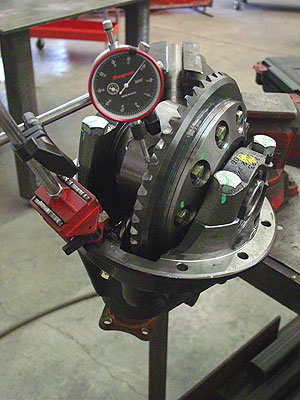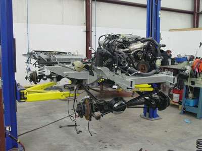 Here you can see the rolling chassis coming along nicely. The axles have been installed and the rear axle has been upgraded to disc brakes and the drive-train has been assembled and installed into the chassis. We try to get as much as we can installed on the motor before the body parts go on so that there is less chance of scratching the new Willow Green paint.