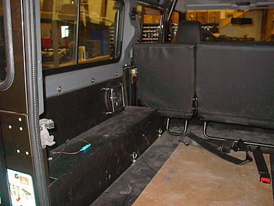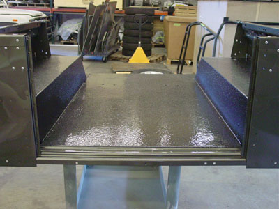 The cargo area of this 110 will not be getting jump seats, it will be a cargo only area. So to help all that cargo stay in place and not damage the interior we have Rhino-Lined the interior of the rear tub. Once we get the tub installed on the frame we will add some secure tie down points and this will make a great place for all the gear that the 110 may want to carry.