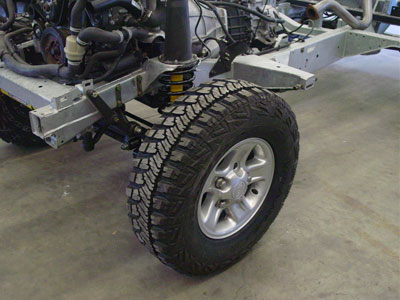 Here you can see the new alloy wheels and G/Y MTR radials that will be on the 110. Its a nice departure from the factory steel wheels and skinny 7.50x16 tires that came stock on the NAS 110 and with the new color these alloys will make a for a great overall look.
