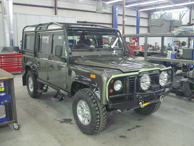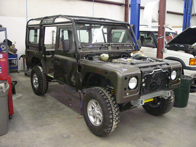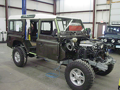 Here you can see the 110 a little further along. The winch rope and recovery points have been added to the front bumper and everything is starting to look ready to hit the road.