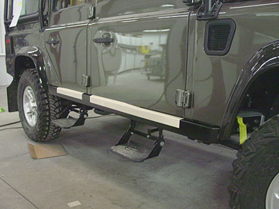 Here you can see the sliders have been installed and the customers choice of the Euro style side steps have been installed at all the side doors. These are great because they can be removed if a big off road trip is planned and they still allow for the kids to be able to get in and out of the Rover more easily.