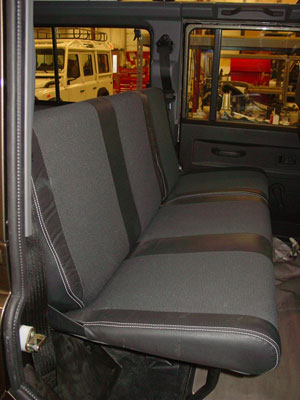 The middle row of seats have now been installed as well. The entire interior has been updated from the old worn out clothe to new black leather, along with black door panels to make everything match nicely.