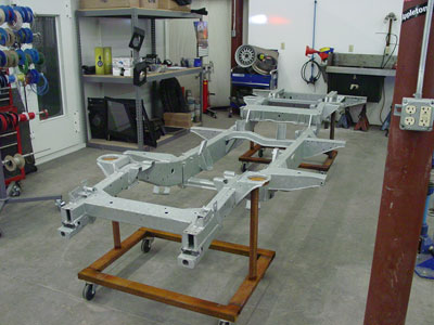 As the 110 continues to get stripped down the new backbone for the project is brought in and made ready for the project, as you can see above. This brand new galvanized frame will cure all the rust issues of the old frame and is already set up for the body mounts of the stock NAS 110.
