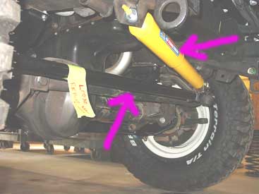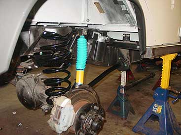 We have also installed upgraded front springs to match the rear units and new Bilstien shocks. Because of the lift in this 110 we can't just install the springs, we need to correct the suspension geometry for correct road manners and steering feel. The arrow above points to the modified radius arms we have fabricated that give the correct caster adjustment and also are much stronger than the original units. Unlike shops that just slap springs in your Defender, we engineer your entire suspension so that your Rover still drives like it should, even with the lift.