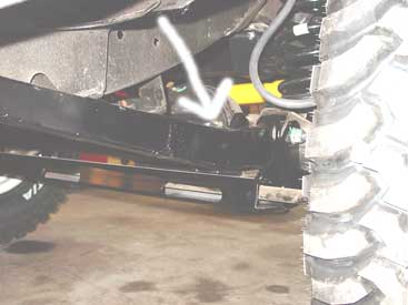 To protect the 110 from what might be hiding on the bottom of that stream crossing we have installed an ECR ROX tie rod guard (see arrows). This unit fully surrounds the tie rod so that it can not be damaged. Unlike an upgraded tie rod this set up means there is no chance of damage, and unlike a large skid plate ground clearance is kept at its maximum.