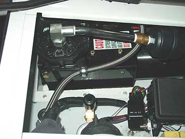 Here you can see the air compressor installed under the passenger seat. It fits nicely and we have access points so that it can be easily service, or even removed if need be.