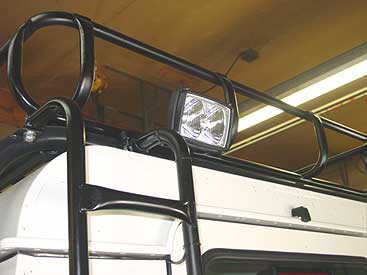 Out back on the 110 we added a Hella twin light lamp that doubles as a killer reverse light, or a work light. Our 3 way switch set up allows this light to come on automatically when you select reverse gear, or you can switch it on manually from the dash so that you can have a ton of light to set up or take down your camp site.