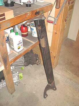 Here you can see the ROX tie rod guard that has been fabricated for this 110. It will completed protect the tie rod from harm, you can even jack up the vehicle by it if you so desire. Shown here in raw form it will now be media blasted, primed and painted and then installed on the Defender.