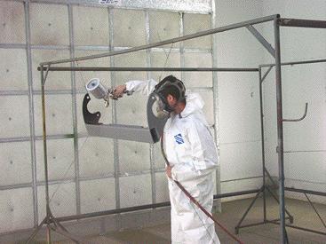 This 110 is also getting a number of ECR ROX off road upgrades. A new ECR ROX tie rod guard has been fabricated for the Defender and you can see it here in our paint booth getting epoxy primed. Once primed with 3 coats of primer it will be painted in satin black and then installed to fully protect the Rover's tie rod from harm when off roading. The heavy duty drag link and Stage II/III radius arms that were fabricated earlier are all being painted at the same time so that rolling chassis assembly can be quick and efficient.
