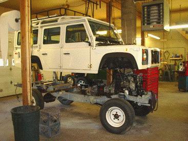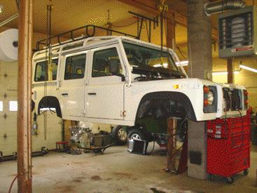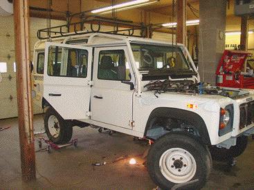This NAS (North America Specification) Defender 110 Station Wagon has come to us from New Jersey. The 110 has had a lot of use and a number of poor repairs, including rear accident damage, an engine that seems to have coolant issues and more. The good news is that the 110 will be getting a new R380 gearbox and a galvanized frame so most of those issues will be taken care of in one fell swoop. We'll also be installing some of our stainless steel products and getting the 110 back into shape so the owner can enjoy it again. The first step is to go over the 110 and make a list of problems, and then forward that to the customer. We call it an evaluation. From that list the customer can pick what he/she does and does not want done.