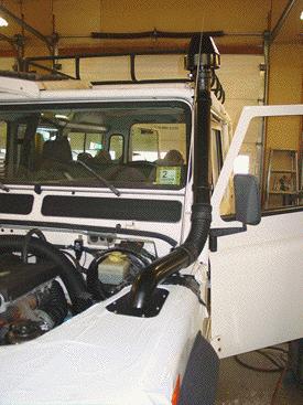 To feed air to the engine we added a raised air intake. We start out with a Mantec system and then modify it to fit the NAS 110. This set up will allow the 110 to wade in deep water if need be, as the diesel has no problem with deep water, and a raised air intake always looks great on a Defender, especially when it is fully functional like on this 110.