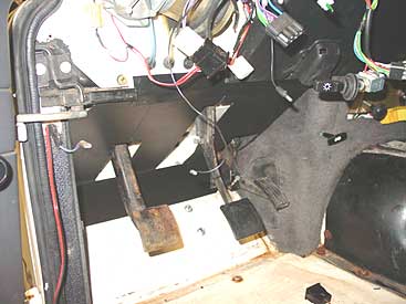 Now that the AC system has been installed and tested, we turned our attention to making it look finished. The arrow above points to a small kick panel that we made to cover up the visible portions of the bulkhead to the right of the AC system. This gives the install a more finished look.